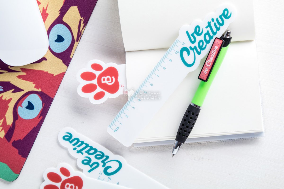 Linijka (11cm) z końcówką własnego projektu (max rozmiar 50x50mm). Cena zawiera 1 kolorowy nadruk. Min zam 100szt.