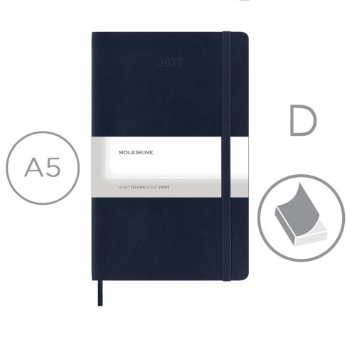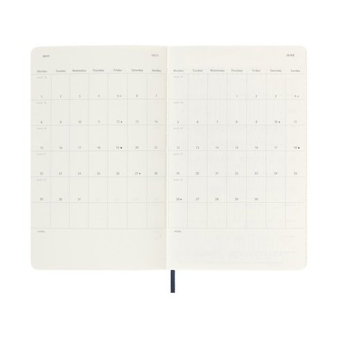 Kalendarz duży (ok. A5, large) MOLESKINE, miękka okładka, dzienny (400 str.), zakładka i elastyczna opaska do zamykania