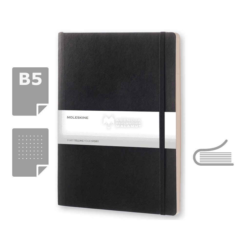 Notatnik XL (ok. B5) MOLESKINE, miękka okładka, 192 kropkowane strony, kieszeń wewnętrzna, zakładka i elastyczna opaska do zamykania