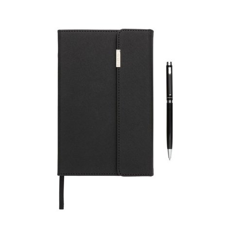 Luksusowy notatnik A5 (80 kremowych kartek 80 g/m2 w linie), okładka wykonana z PU z metalowym logo, długopis z niemieckim wkładem w komplecie, długość pisania ok. 1200 m, w ozdobnym pudełku, ślad węglowy produktu: 1,34 kg CO2