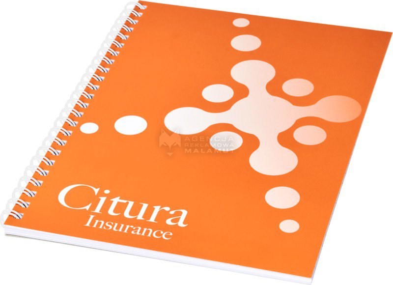Notatnik na spirali Desk-Mate® w formacie A5. Zawiera 50 arkuszy (80 g/m2) czystych kartek z okładką (450 g/m2). Okładka odporna na rozrywanie i działanie wody. Biała przedziałka. Możliwość zdobienia okładki i każdego arkusza. Papier, 80 g/m2, Polipropylen.