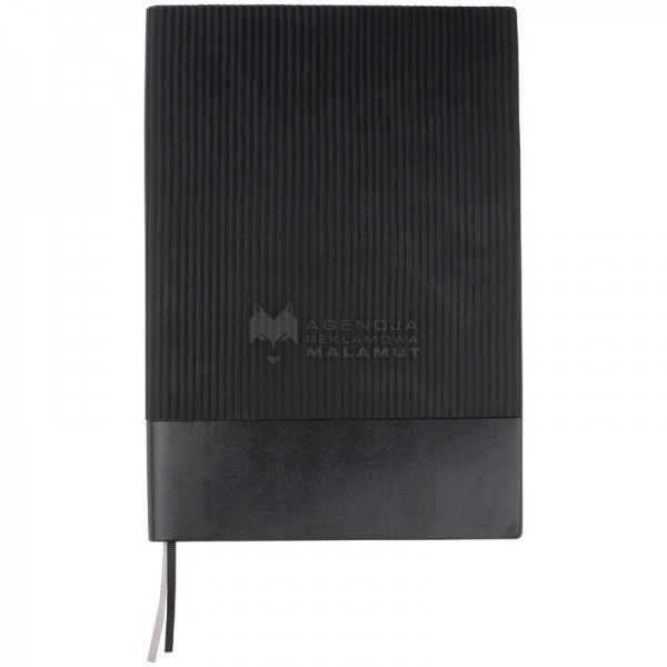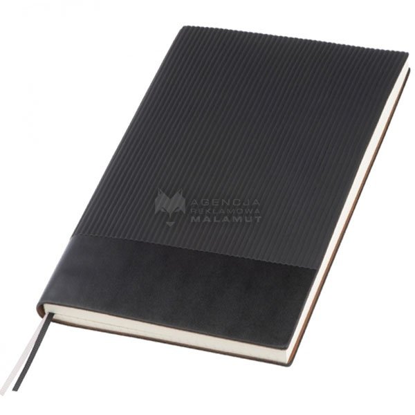 Notes A5 z 200 stronami w kratkę w miękkiej oprawie PU z podwójną tasiemką pełniącą funkcję zakładki.
