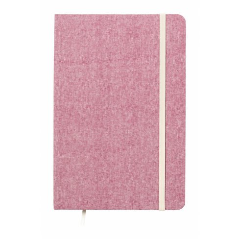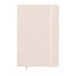 Notatnik z okładką z bawełny z recyklingu, 100 czystych kartek, z zakładką i gumką. 100% bawełna z recyklingu. Rozmiar A5.