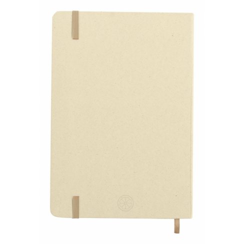 Notes w okładce z papieru pozyskanego z owoców z 80 kartkami w linie z papieru pochodzącego z recyklingu. Z zakładką i gumką. Rozmiar A5.