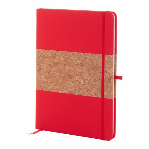 Notes z okładką pokrytą naturalnym korkiem i skórą PU z recyklingu, z dopasowaną kolorową zakładką, elastyczną opaską i uchwytem na długopis. Zawiera 80 kartek w linie z papieru makulaturowego. Rozmiar A5.