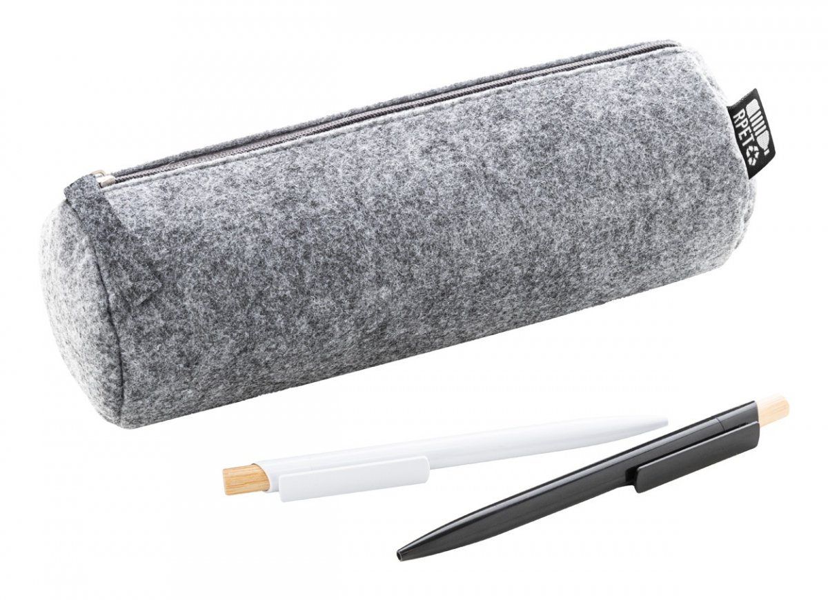 Zapinane na suwak etui na długopis z filcu RPET. Z charakterystyczną metką RPET.