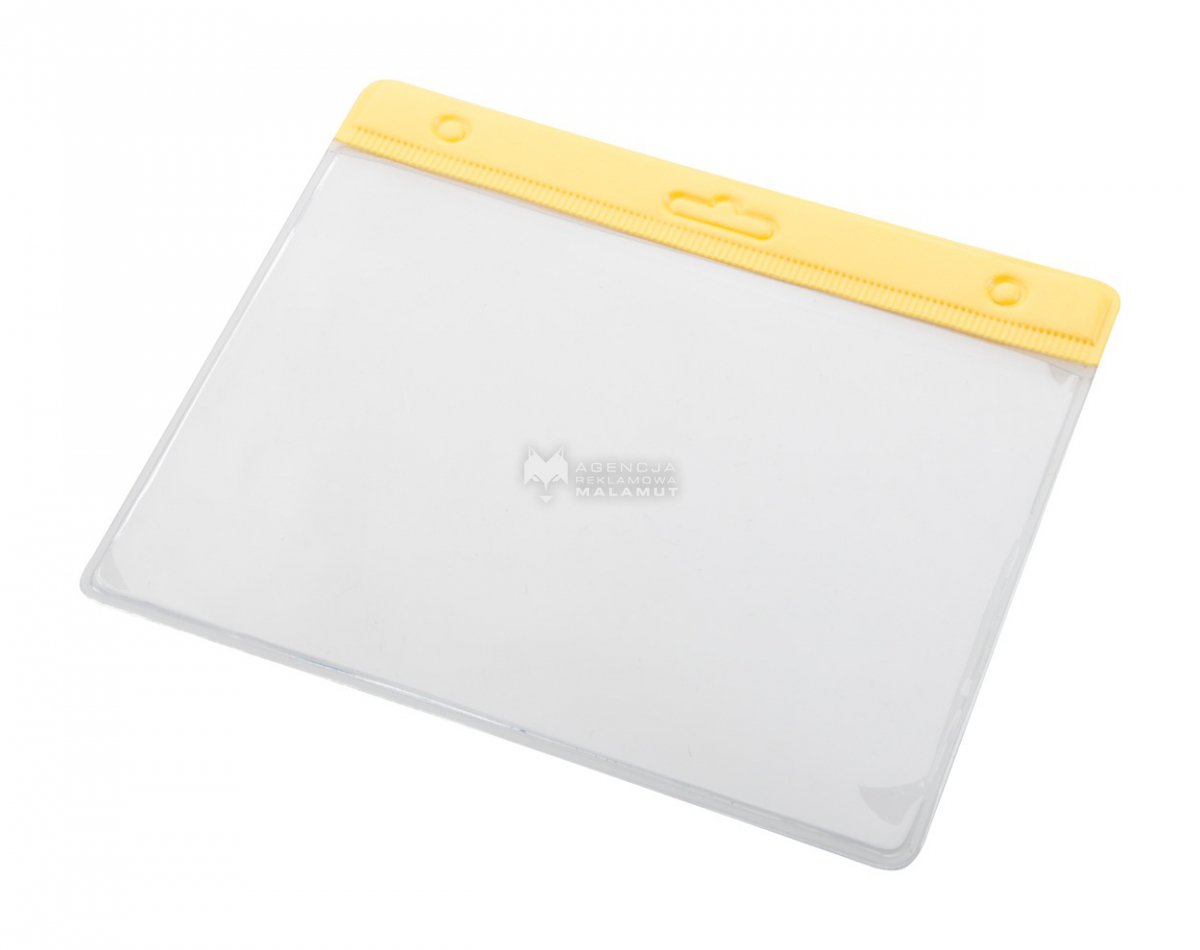 Transparentne etui na przepustki z PVC z kolorowym nagłówkiem.