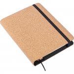 Korkowa teczka konferencyjna A5, elastyczna opaska zamykająca, pętelka na długopis, wyjmowany notatnik A5 (192 kartki z papieru z recyklingu w linie o gramaturze 70 g/m2), produkt wykonany z korka, papieru i poliestru