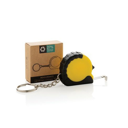 Brelok do kluczy, miara 1 m, wykonana z ABS z recyklingu i metalu, całkowita zawartość materiałów z recyklingu obliczona w oparciu o wagę całkowitą przedmiotu: 27%, w pudełku z certyfikatem FSC® mix