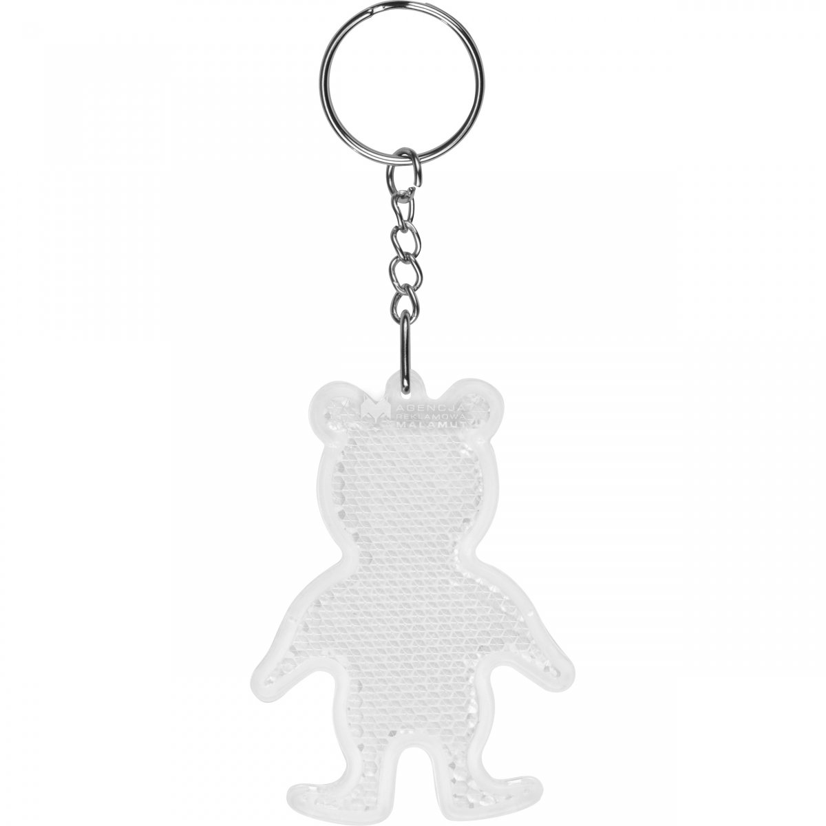 Odblaskowy brelok w kształcie misia w kolorze żółtym, wykonany z plastiku.
