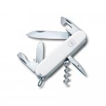 Narzędzie wielofunkcyjne Victorinox Spartan z 12 funkcjami: pęseta, małe i duże ostrze, brelok, otwieracz do puszek, śrubokręty (3 i 6 mm), korkociąg, wykałaczka, otwieracz do butelek, ściągacz izolacji oraz rozwiertak, przebijak i szydło, zapakowane w pudełko upominkowe, produkt wykonany z metalu i stali nierdzewnej