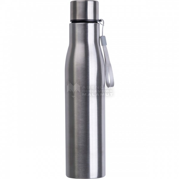 Butelka do picia z pojedynczą ścianką wykonana z recyklingowej stali nierdzewnej 304 z paskiem do noszenia na pokrywce i pojemnością 900 ml.