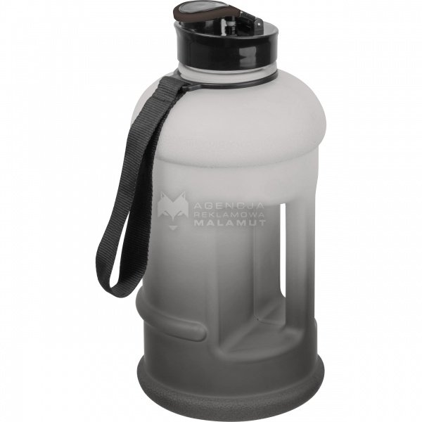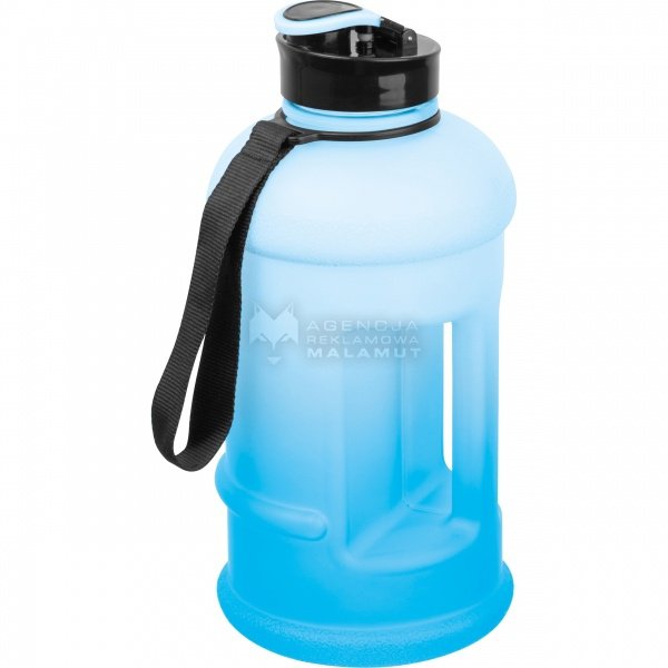 Bardzo duża butelka do picia wykonana z plastiku z przedziałką wskazującą ilość wypitej wody, o pojemności 1300 ml. Wgłębienia na butelce zapewniają pewny chwyt podczas picia, butelka pokryta materiałem soft-touch, przyjemnym w dotyku.