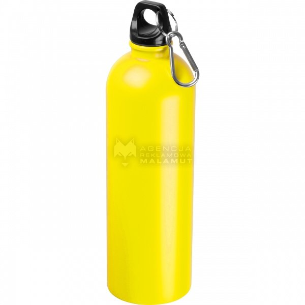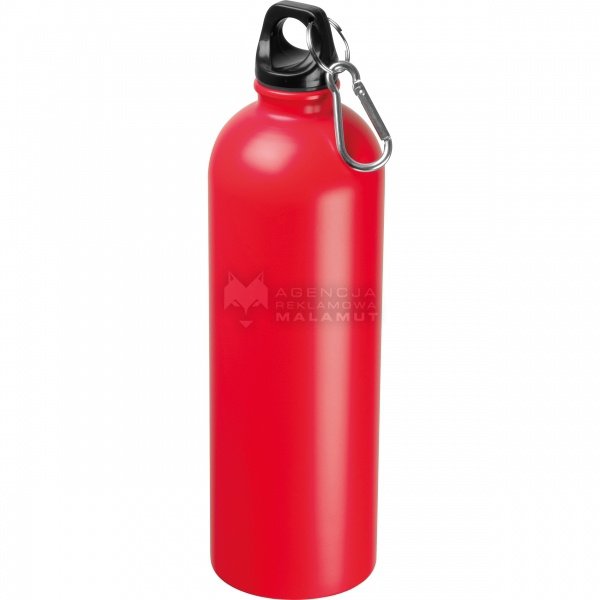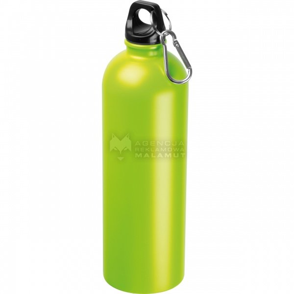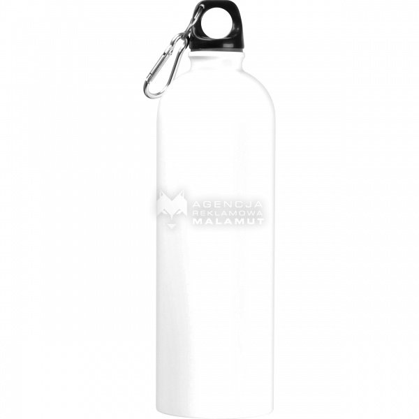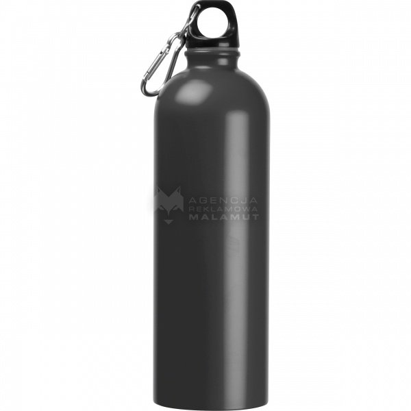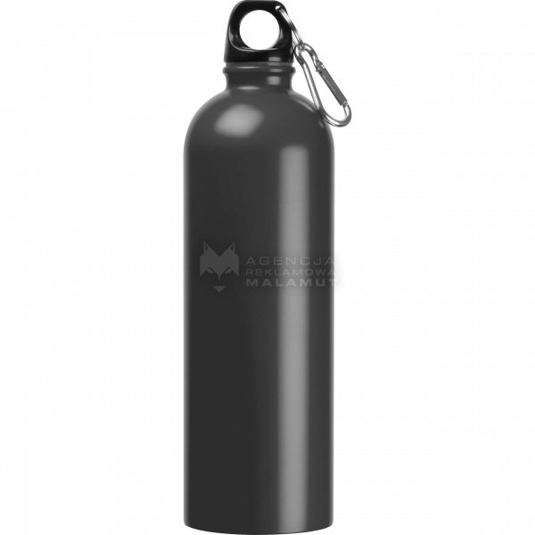 Lekka, stalowa butelka o pojemności 750 ml, z zakrętką, do której przymocowany został karabińczyk, dzięki czemu butelkę można wygodnie przyczepić np. do plecaka.