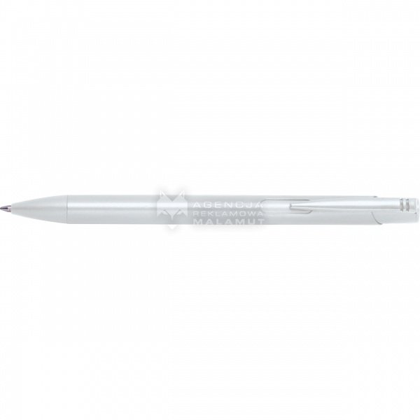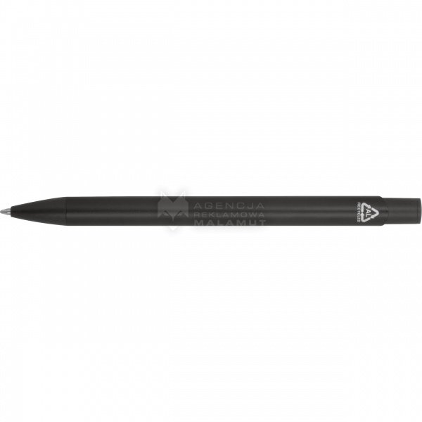 Długopis wykonany z recyklingowego aluminium z niebieskim wkładem o dużej pojemności.