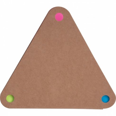 Trójkątny bloczek z karteczkami samoprzylepnymi . Bloczek zawiera 20 większych białych karteczek samoprzylepnych i 3 x 20 mniejszych kolorowych karteczek samoprzylepnych.