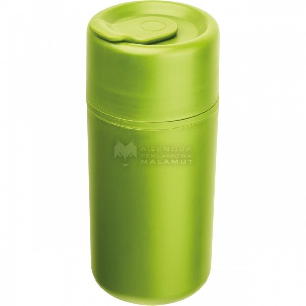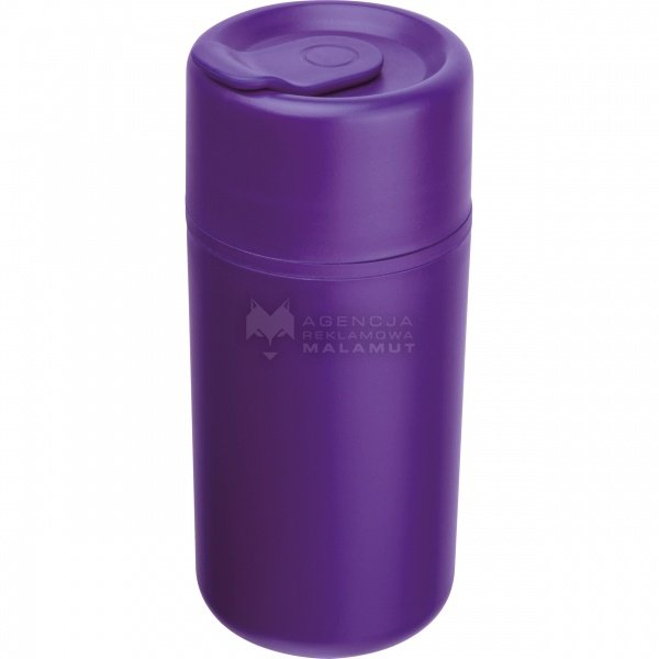 Kubek do picia z podwójnymi ściankami wykonany z polipropylenu o pojemności 500 ml z przesuwną pokrywką do picia. Nadaje się do napojów gazowanych.