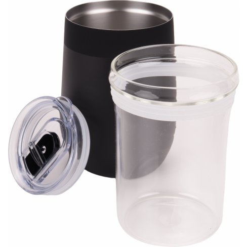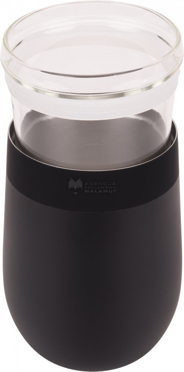 Kubek termiczny marki MoLu, wykonany ze stali nierdzewnej, z wkładem ze szkła borokrzemowego. Utrzymuje temperaturę napoju przez 12 h. Pojemność 350 ml.