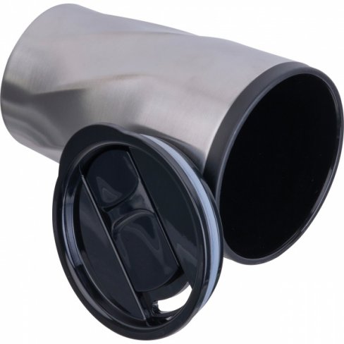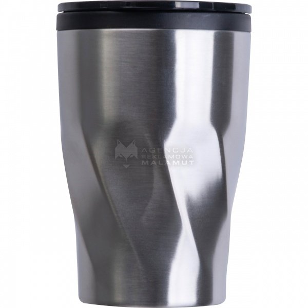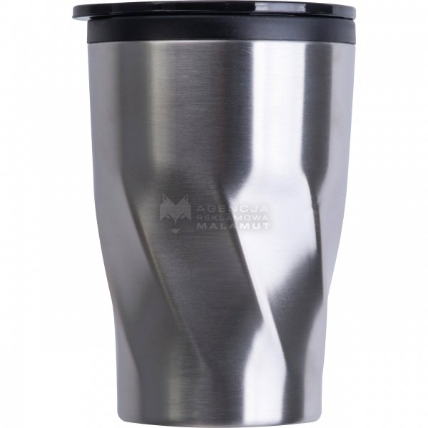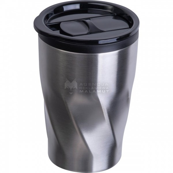 Kubek termiczny z podwójnymi ściankami wykonany ze stali nierdzewnej z wewnętrzną częścią plastikową (PP), pokrywką z przesuwnym otworem do picia i pojemnością 350 ml. Kubek nadaje się do napojów gazowanych.