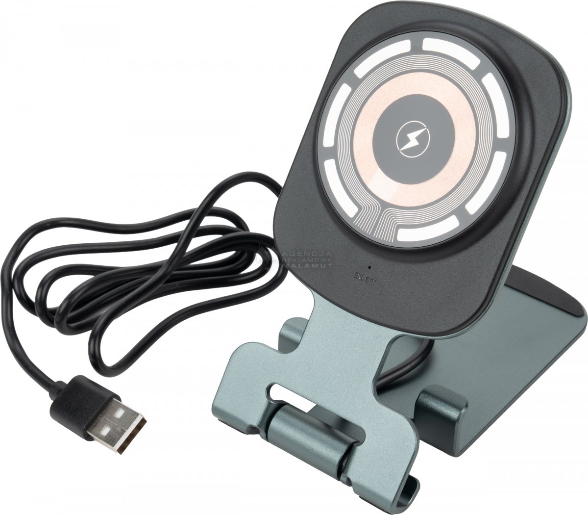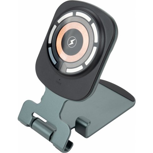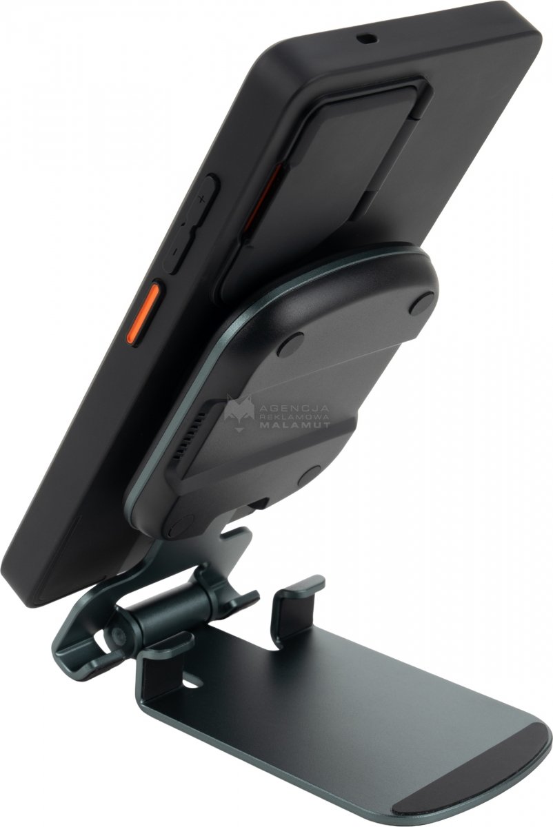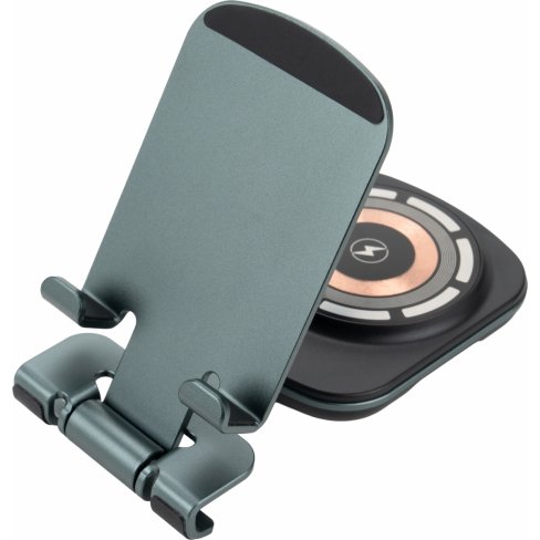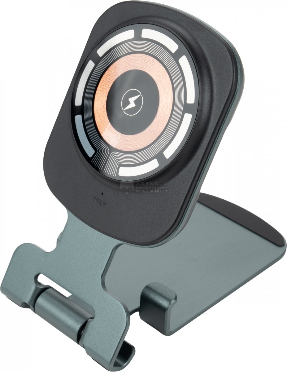 Uniwersalna ładowarka bezprzewodowa pełniąca jednocześnie funkcję praktycznego stojaka na telefon. Urządzenie jest kompatybilne z produktami Apple, takimi jak iPhone, AirPods i Apple Watch. Oferuje szeroki zakres mocy wyjściowej (15W, 10W, 7,5W, 5W), dostosowując się do potrzeb ładowanego sprzętu, a zasilana jest przez nowoczesny interfejs Type-C (wejście: 5V/9V/12V – 2A maks.). Konstrukcja wykonana jest z wytrzymałego połączenia stopu aluminium, PC oraz ABS, co zapewnia trwałość i elegancki wygląd. W zestawie znajduje się ładowarka, metrowy kabel do szybkiego ładowania Type-C oraz neutralne pudełko prezentowe o wymiarach 7,2 × 2,2 × 17 cm.
