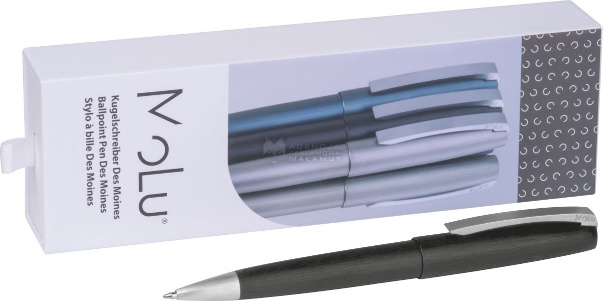 Długopis metalowy MoLu – Mocny. Pełen charakteru. Z szerokim klipsem i wysokiej jakości wkładem Parker – niebieskim tuszem i wymiennym. Dostarczany w eleganckim, wysuwanym pudełku – gotowy, by zrobić wrażenie. Solidna metalowa konstrukcja, precyzyjne wykonanie – pisanie ze stylem.
