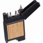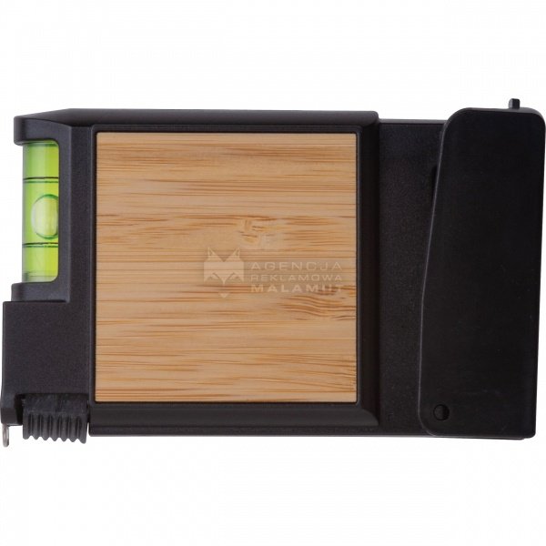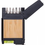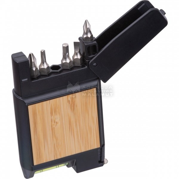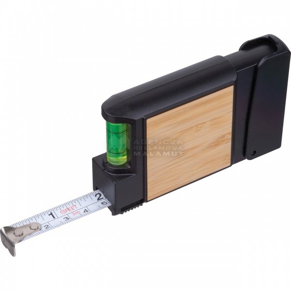 Miara 3-metrowa wykonana z plastiku z poziomnicą, przyciskiem blokującym i pięcioma różnymi bitami.