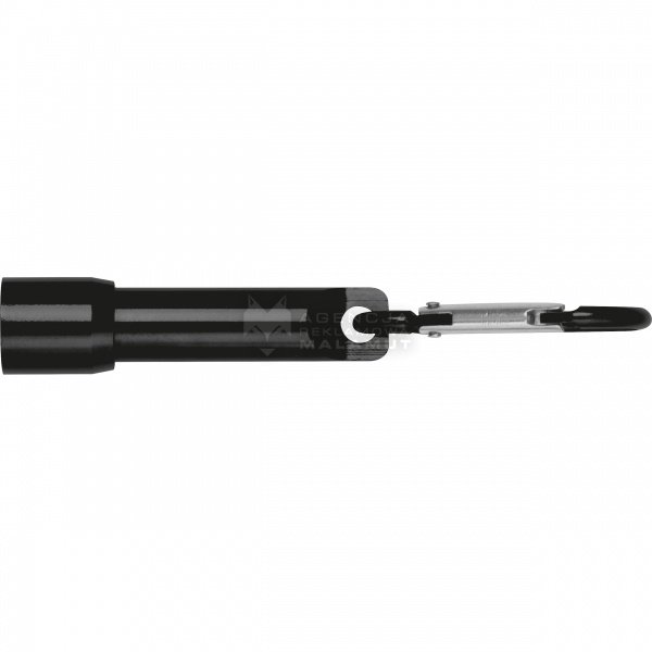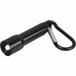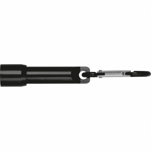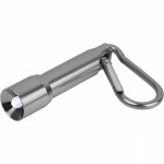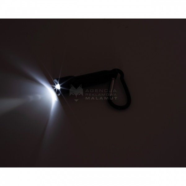 Mini latarka z karabińczykiem wykonana z recyklingowego aluminium. W zestawie 4 baterie guzikowe.