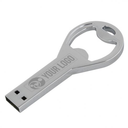 Pendrive zakończony otwieraczem do butelek, wykonany z metalu. Możliwość wyboru pojemności, smyczki i opakowania.Dostępne pojemności: 8GB, 16GB, 32GB, 64GB, 128GB.Wymiary: 7,5 x 3,4 x 0,5 cm.Min. ilość zamówienia: 100 szt.