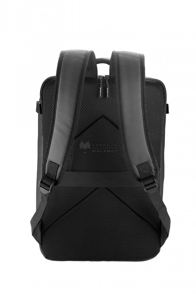 Plecak przypomina walizkę podróżną. Posiada wewnętrzną komorę, która zawiera dużą kieszeń z siatki zapinaną na zamek, na zewnątrz plecaka znajduje się przednia kieszeń zapinana na zamek, kieszeń zapinana na zamek z tyłu plecaka oraz pasek. Plecak posiada watowane plecy i szelki.