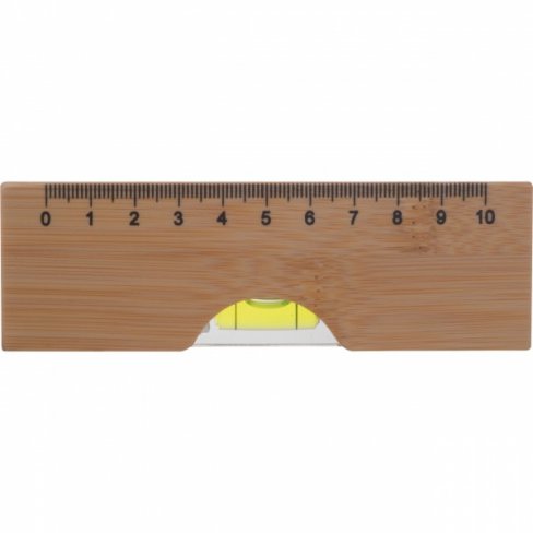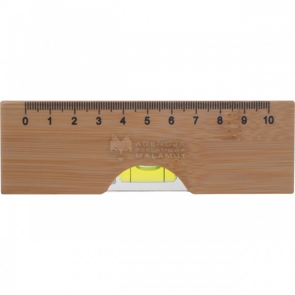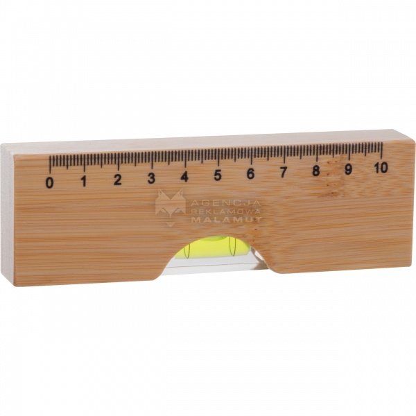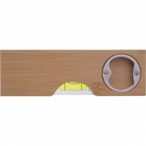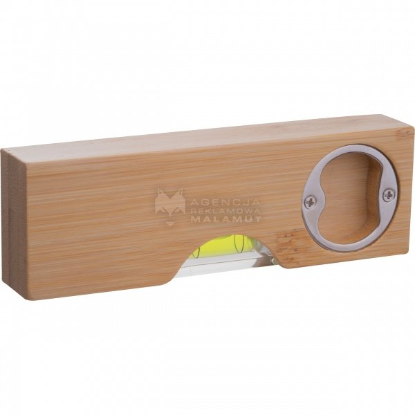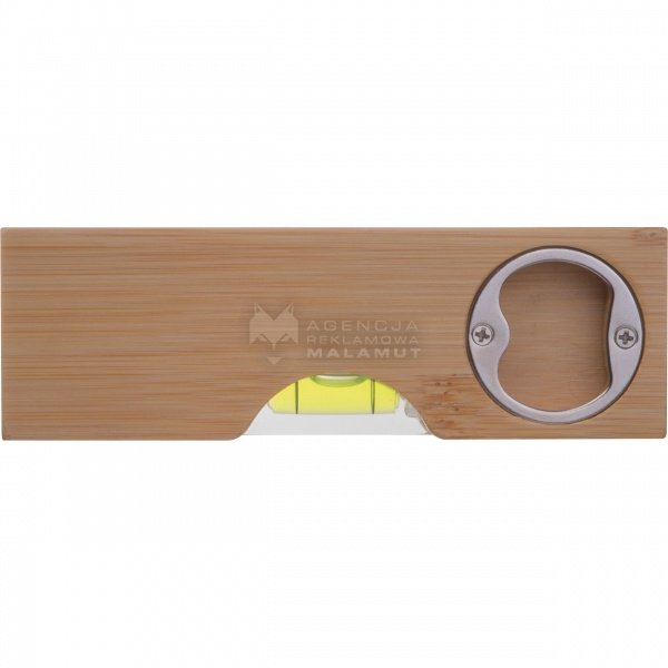 Poziomnica wykonana z bambusa ze skalą pomiarową i otwieraczem.