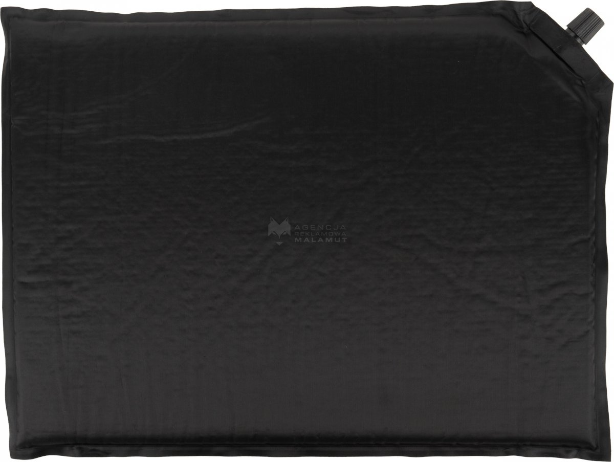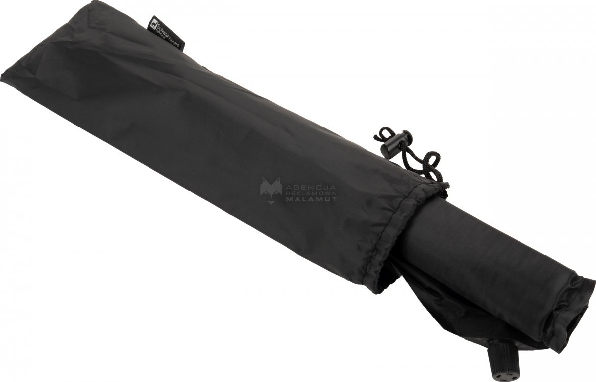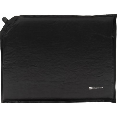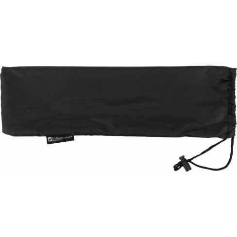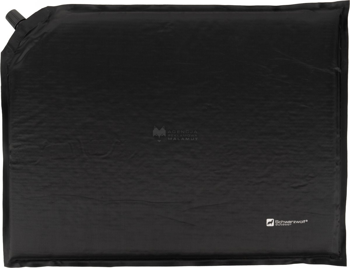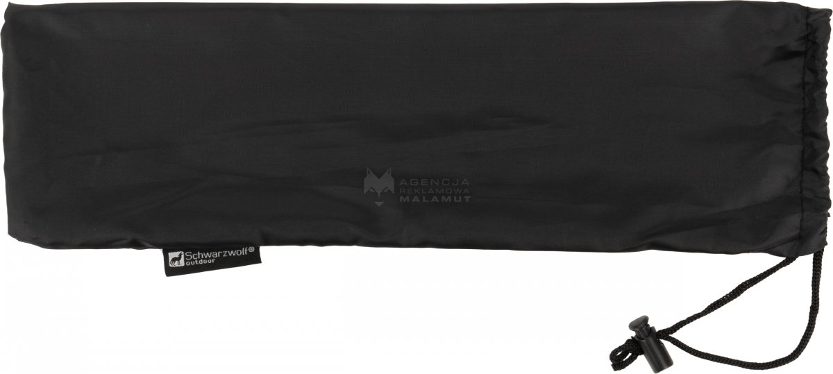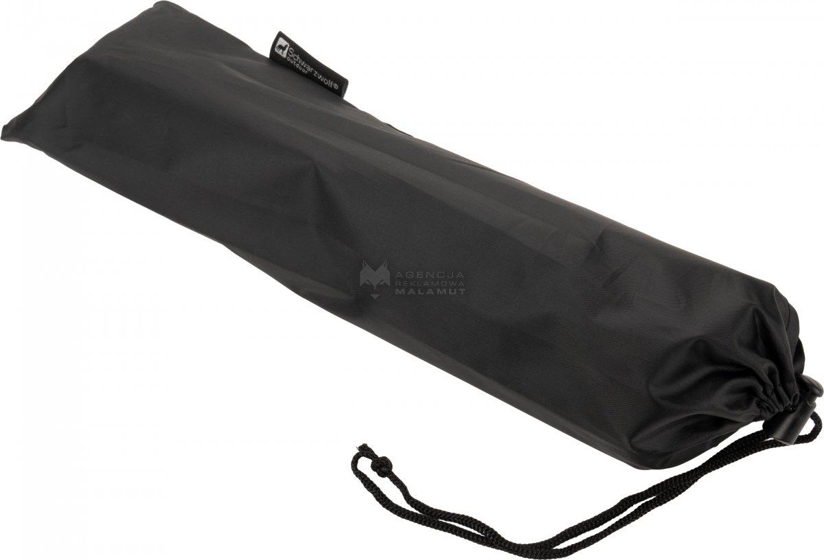 Poduszka podróżna dmuchana Schwarzwolf w czarnym kolorze. Zapakowana w woreczek ściągany sznurkiem.