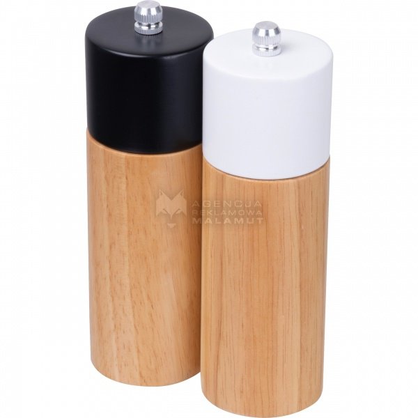 Zestaw młynków do soli i pieprzu wykonany z drewna z ceramicznymi mechanizmami mielenia.