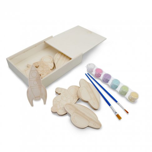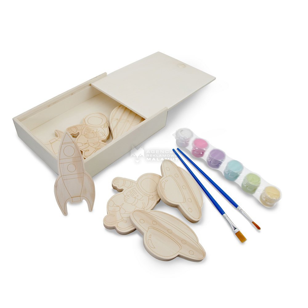 Zestaw drewnianych klocków do malowania, farbki i 2 pędzelki | Priya VA121