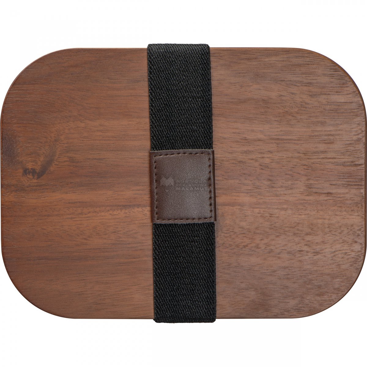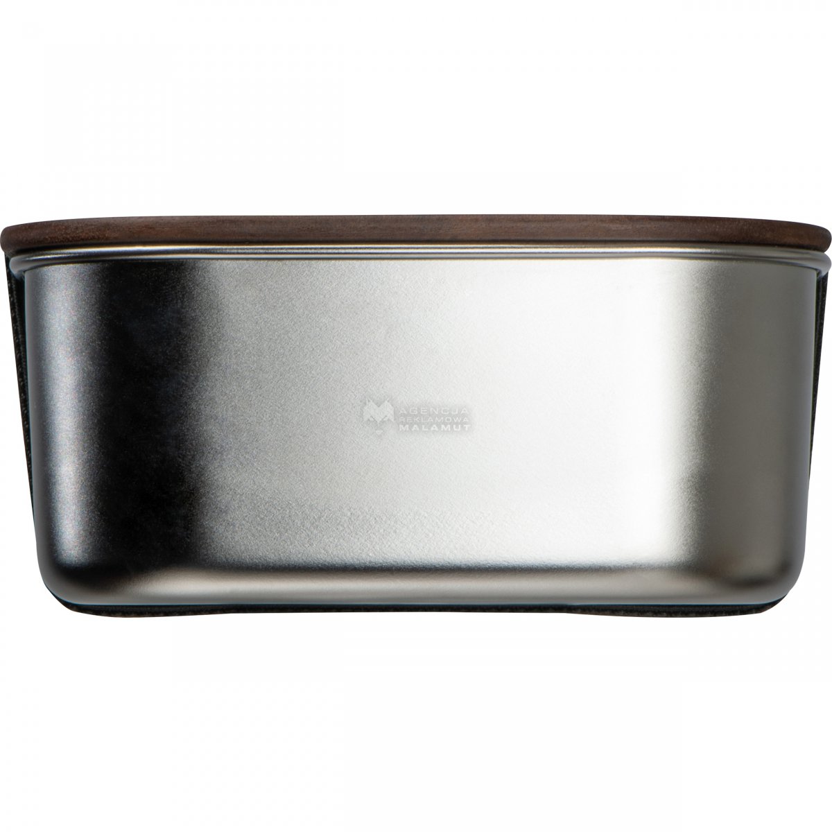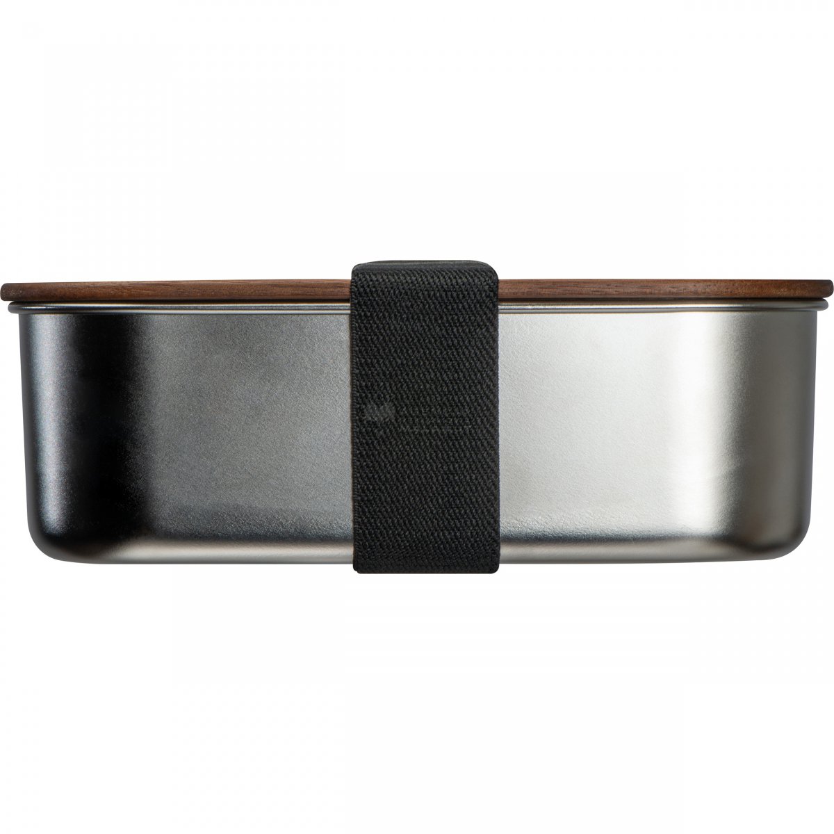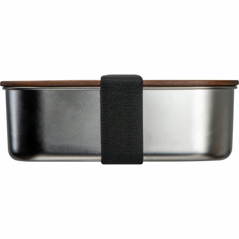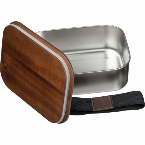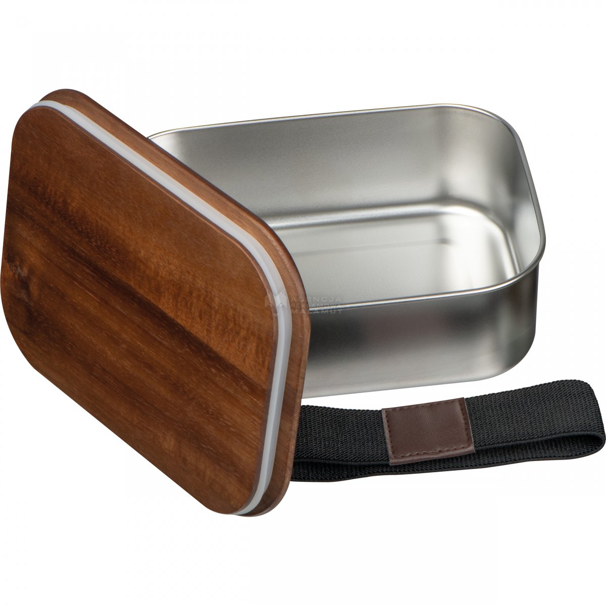 Lunch box wykonany ze stali nierdzewnej z recyklingu, z pokrywką z drewna akacjowego oraz gumką. Pojemność 1000 ml.