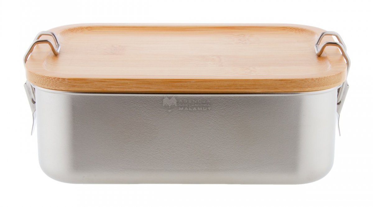 Pudełko śniadaniowe na lunch ze stali nierdzewnej z bambusową pokrywką i bezpiecznym zamknięciem na klamry, 750 ml.