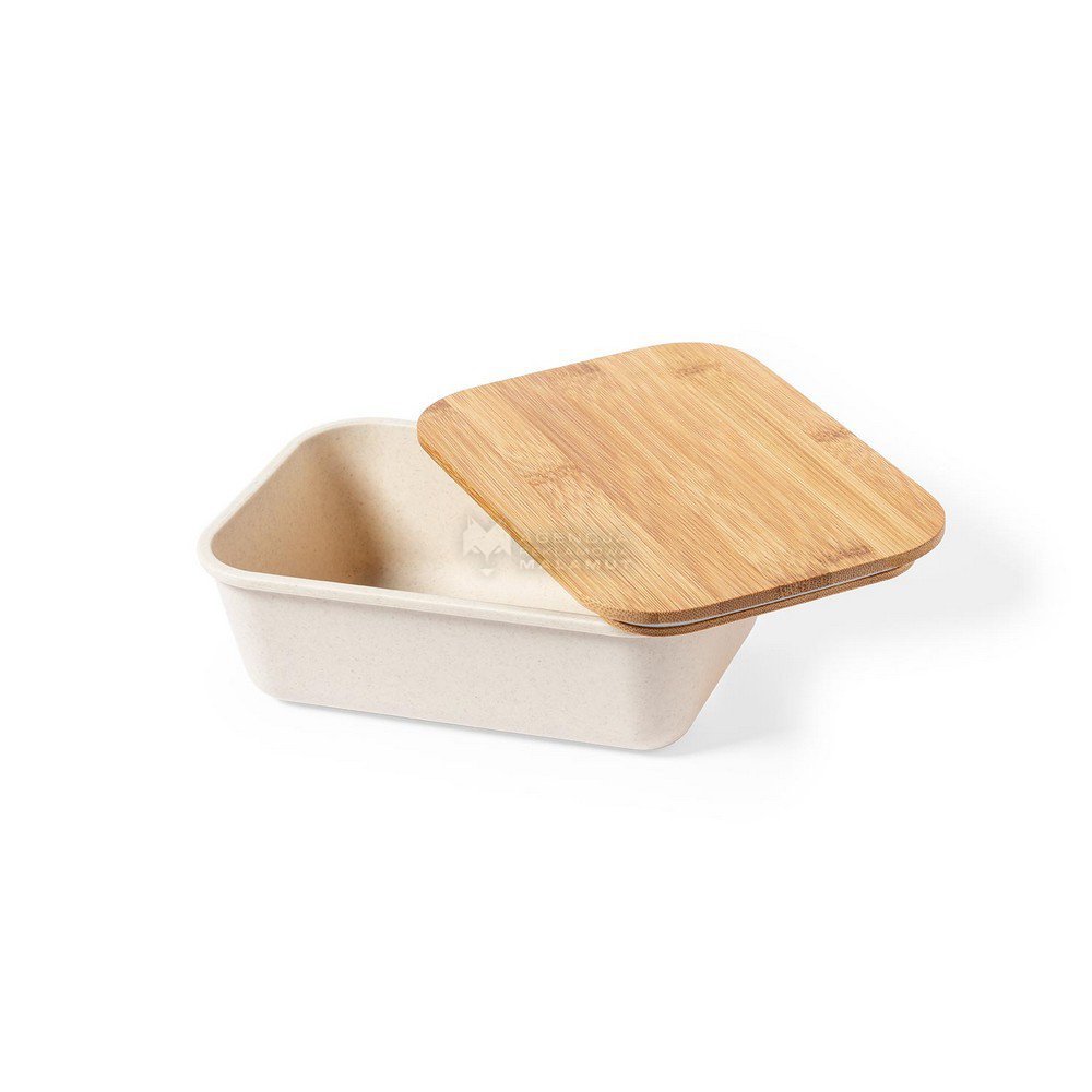 Pudełko śniadaniowe 1 L z bambusowym wieczkiem, połączone paskiem