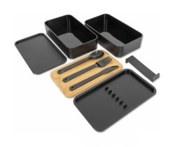 Pudełka śniadaniowe 2 szt., 2x400 ml, bambusowe wieczko, sztućce V1215