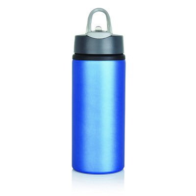 Butelka sportowa 600 ml, wykonana z wytrzymałego aluminium, pojedyncza ścianka, zakręcane wieczko, zamykany otwór do picia