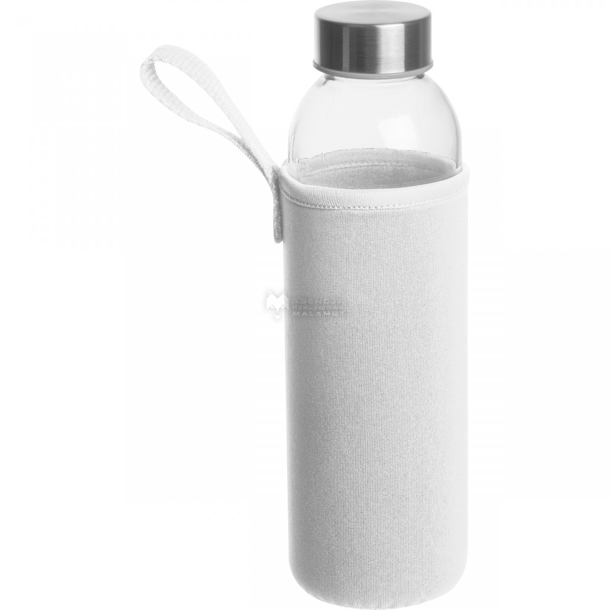 Szklana butelka z metalową zakrętką, w etui z neoprenu, o pojemności 500 ml. Dostępna w bogatej gamie kolorystycznej.