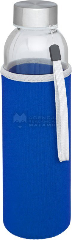 Szklana butelka z jednowarstwową ścianką i zakrętką. Zakrętka posiada pasek do łatwego przenoszenia oraz neoprenowe etui. Zalecana do zimnych napojów. Nie zamrażać, nie używać w kuchence mikrofalowej. Pojemność 500 ml. Zapakowane w pudełko podarunkowe.