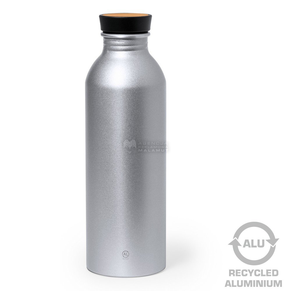 Butelka sportowa 550 ml wykonana z aluminium z recyklingu, zakrętka z bambusowym elementem, satynowe wykończenie