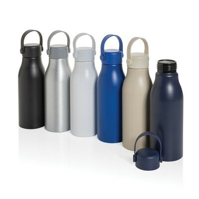 Butelka sportowa 680 ml, pojedyncza ścianka, wykonana z aluminium z recyklingu, silikonowy uchwyt, szczelne, zakręcane wieczko, wyłącznie mycie ręczne