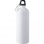 Butelka sportowa 750ml, jednowarstwowa, ikona recyklingu na produkcie, nie nadaje się do mycia w zmywarce, produkt wykonany ze stali nierdzewnej z recyklingu, nakrętka z PP, srebrny aluminiowy karabińczyk