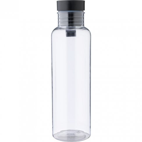 Butelka sportowa 750 ml, ozdobiona bambusowym detalem na górze, silikonowy pasek do przenoszenia, nie nadaje się do mycia w zmywarce, indywidualnie zapakowana w torebkę foliową z recyklingu, produkt wykonany z RPET, nakrętka z PP