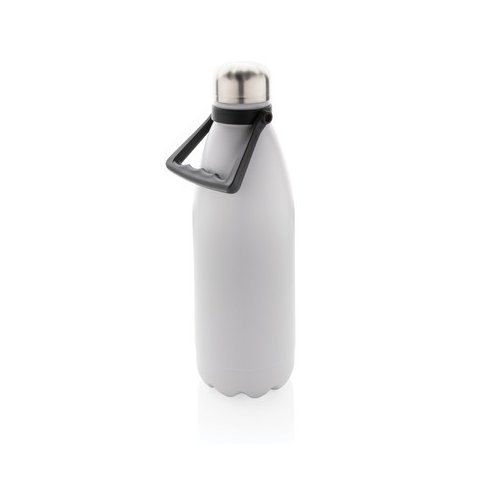 Butelka termiczna 1500 ml z uchwytem, proszkowa powłoka, wykonana ze stali nierdzewnej pochodzącej z recyklingu, całkowita zawartość materiałów z recyklingu obliczona na podstawie wagi całkowitej przedmiotu: 88%, podwójne ścianki z próżnią pomiędzy, w opakowaniu z certyfikatem FSC®, utrzymuje temperaturę napojów gorących do 20 godzin oraz zimnych do 15 godzin