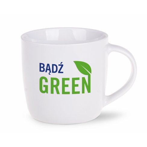 Kultowy kubek reklamowy o klasycznych, obłych kształtach.