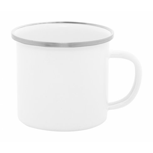 Kubek metalowy emaliowany w stylu vintage z obrzeżem ze stali nierdzewnej, do nadruku sublimacyjnego, pojemność 200 ml. W białym kartoniku.