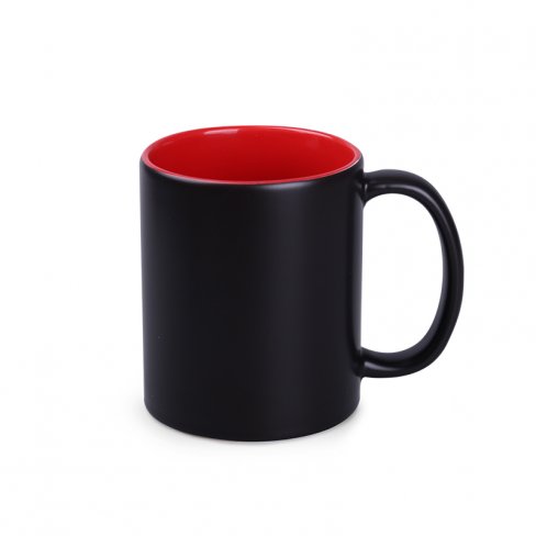 Kubek reklamowy o klasycznym, cylindrycznym kształcie i eleganckim, satynowym wykończeniu. Przystosowany do wykonywania nadruków typu Magic Mug – grafik widocznych dopiero pod wpływem ciepła. Matowa powłoka zewnętrzna skutecznie maskuje wzór, gdy kubek pozostaje zimny, potęgując efekt zaskoczenia po nalaniu gorącego napoju.