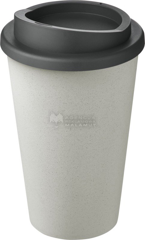 Dwuwarstwowy, izolowany kubek z zakręcaną pokrywą. Kubek wykonany jest w 100% z polipropylenu z recyklingu, a pokrywka z polipropylenu klasy spożywczej. Ponieważ pokrywka nie jest wykonana z materiałów pochodzących z recyklingu, można ją zamówić w szerokiej gamie różnych kolorów. Odcień czerni na kubku może się różnić w zależności od rodzaju użytego materiału z recyklingu. Pojemność 350 ml. Wyprodukowano w Wielkiej Brytanii. Zapakowany w torbę, którą można kompostować w domu. Produkt wolny od BPA.