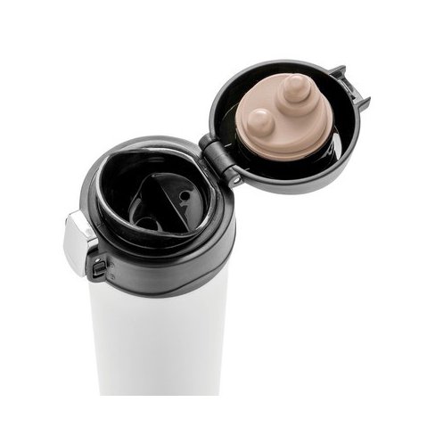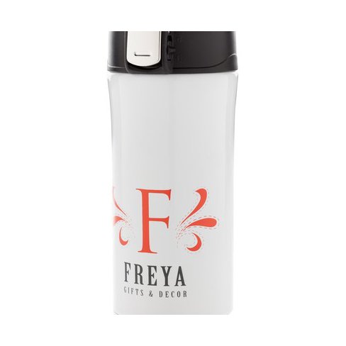 Kubek termiczny 300 ml, podwójne ścianki ze stali nierdzewnej z próżnią pomiędzy, obsługa jedną ręką, wykonany z materiałów pochodzących z recyklingu z certyfikatem RCS, całkowita zawartość materiałów z recyklingu obliczona na podstawie wagi całkowitej przedmiotu: 71%, w pudełku z papieru kraftowego z certyfikatem FSC®, utrzymuje temperaturę napojów gorących do 20 godzin oraz zimnych do 15 godzin